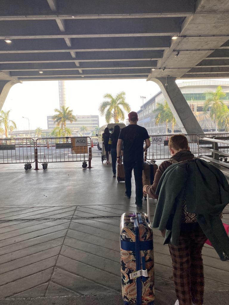 Dort war es dann wirklich spannend, denn wir wurden im Gang des Flughafens auf Stühle in immer gleichen Abständen gesetzt und dort wurden unsere Unterlagen geprüft – der Thailandpass und das Ergebnis vom PCR-Test. In weiteren Kontrollen wurde dann unsere Temperatur kontrolliert, unser Impfnachweis und natürlich unsere Pässe.