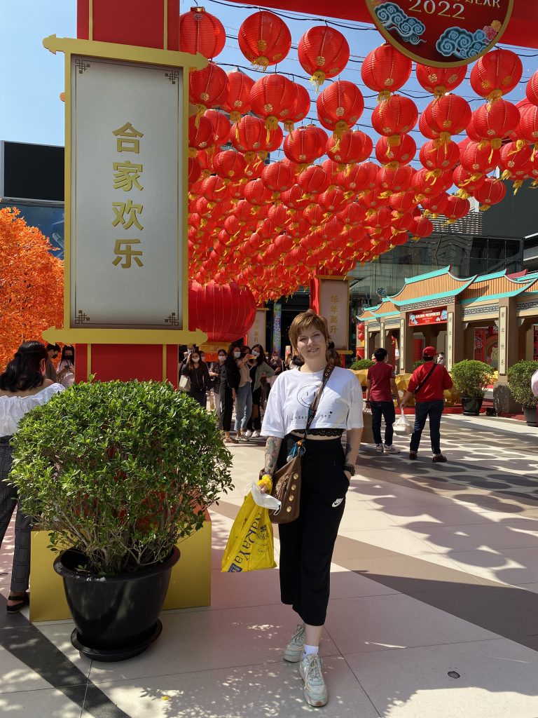 Beim Rumschlendern haben wir immer wieder Leute gesehen, die im chinesischen Stil und in rot gekleidet waren und auch Special Sale-Werbung und Aufsteller, die zum “Jahr des Tigers“ geworben haben. Am 01. Februar startete nämlich das Chinesische Neujahrsfest 2022 zum Jahr des Tigers. Diese Feierlichkeit dauert 16 Tage und wird in der Regel LAUT gefeiert! Davon haben wir auch einen kleinen Eindruck bekommen, als wir den lauten Trommelklängen hinterher gegangen sind und im Center eine Show angesehen haben. Tänzer und Akrobaten, die in Kostümen und Drachenverkleidungen gekleidet waren, haben dort ordentlich Party gemacht. Einige trugen auch Masken. Es war wirklich toll! Nach der Show haben wir den Ausgang genommen zum Übergang des anderen Teils des Centers und auch dort blieb das Jahr des Tigers nicht verborgen.