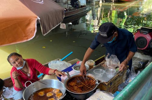 Nachdem wir uns diesen Tempel angesehen hatten, spazierten wir weiter und so in die Richtung “Khao San Road“. Diese ist als “Partystraße“ bekannt und dort kann man das Nachtleben erleben. Aufgrund der Pandemie war dort lange Zeit alles geschlossen. Heute haben die Bars (zumindest ein Teil) wieder geöffnet, jedoch nur bis 23:00 Uhr – wie überall in Thailand endet der Ausschank um diese Uhrzeit.