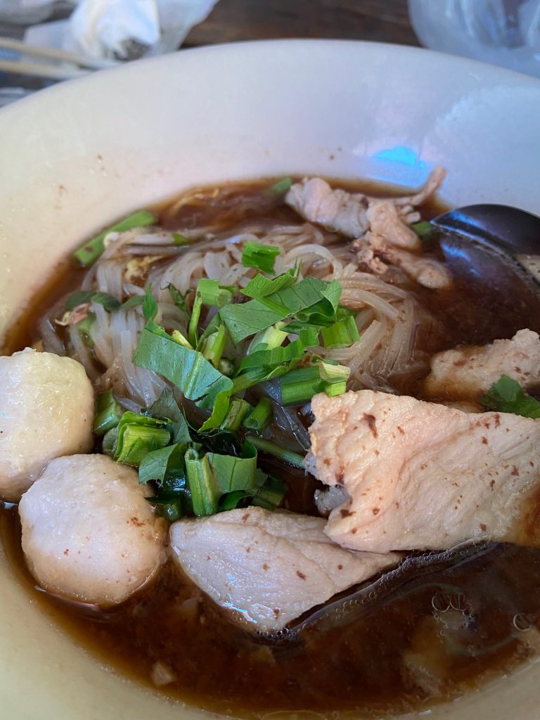 Und weiter ging es nach der kurzen Pause mit dem Boot über einen etwas anderen Weg zurück zum eigentlichen Floating Market. Dort haben wir uns nochmals umgesehen und das Essen bewundert. Jeder hat sich auch noch eine Köstlichkeit ausgesucht zum Essen. Shibbz und ich probierten die Boat-Noodles und… also ja es war eh schon alles lecker aber diese Nuddelsuppe war leckerer als lecker! Davon haben wir danach noch oft gesprochen.